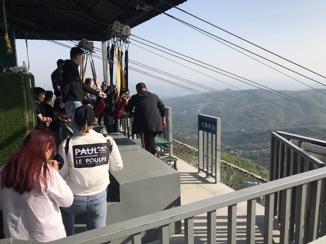 “五一”小長假期間滑索項目人氣爆棚 員工堅守崗位